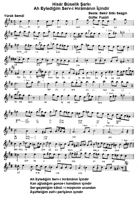 | Hisâr Bûselik | Bekir Sıtkı Sezgin | Fuzûlî | Yürük Semâî |