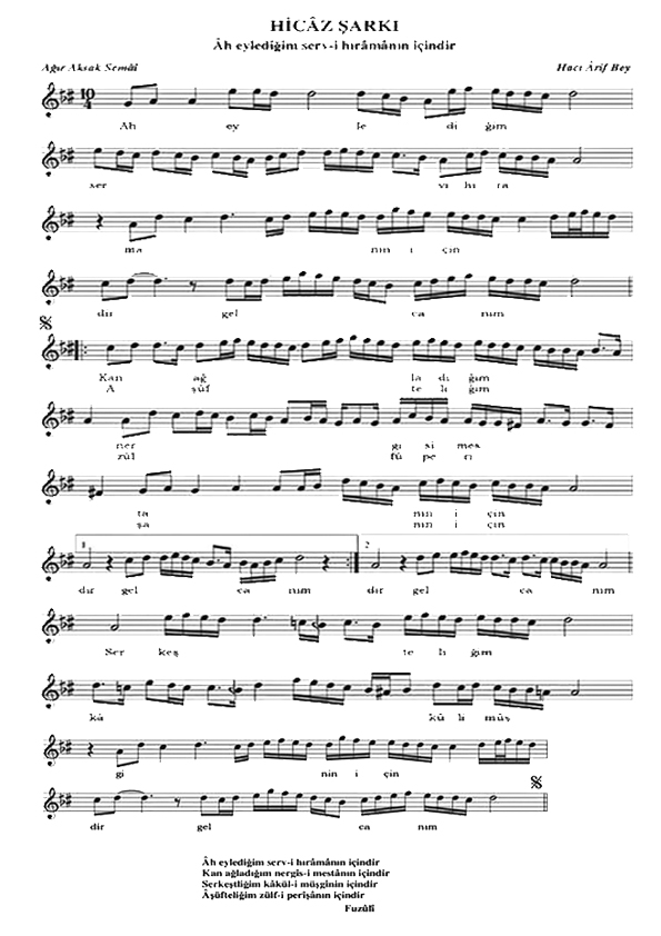 | Hicaz | Hacı Arif Bey | Fuzûlî | Aksak Semâî |