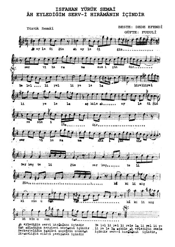 | Isfahan | Dede Efendi | Fuzûlî | Yürük Semâî |