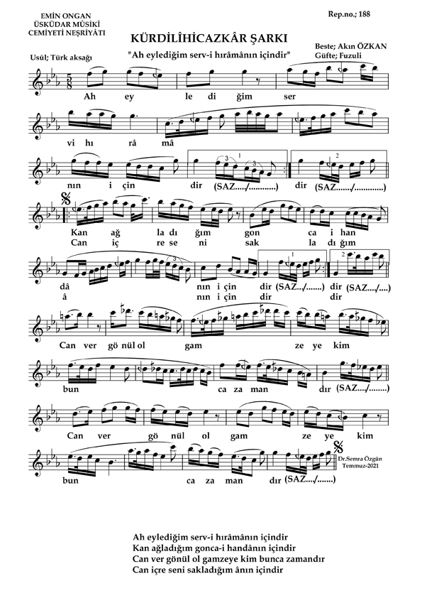 | Kürdîli Hicazkâr | Akın Özkan | Fuzûlî | Türk Aksağı |