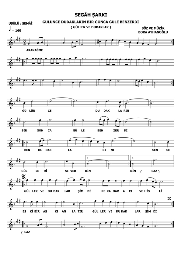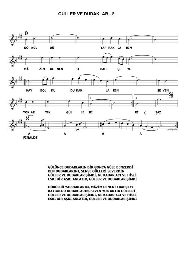 Gülünce dudakların bir gonca güle benzerdi (GÜLLER VE DUDAKLAR) Notası