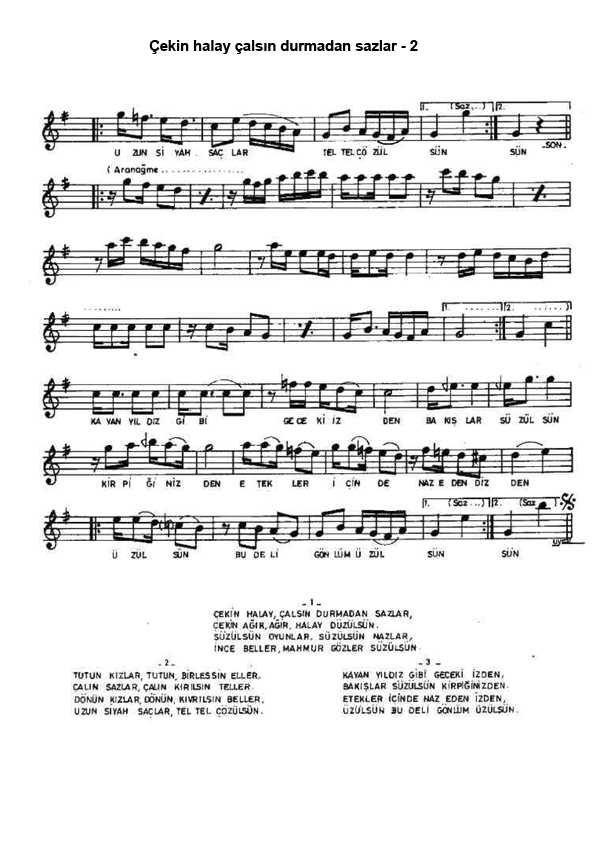 Çekin halay çalsın durmadan sazlar (HALAY) - Notası-Sözleri-Video